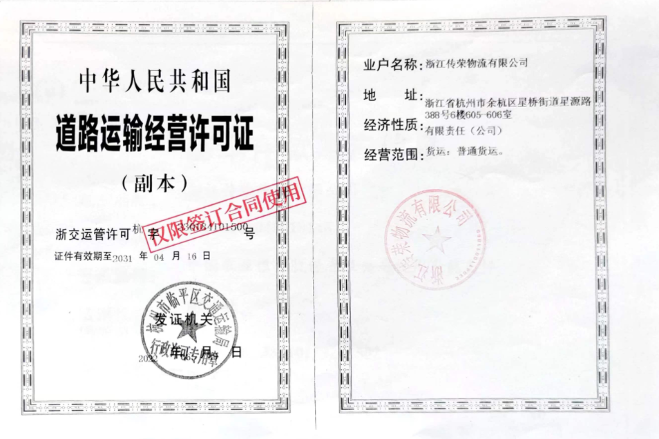 证书 | 证书 | 道路经营许可证 |
